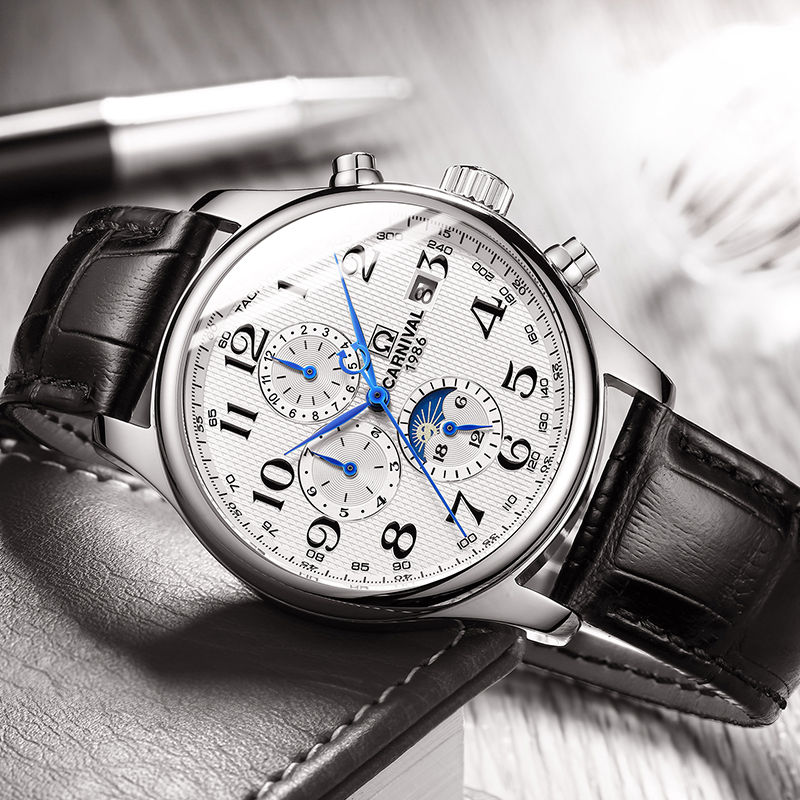 Carnival Brand Automatic Watch Fashion Luxury Waterproof Calendar Moon Phase Mec